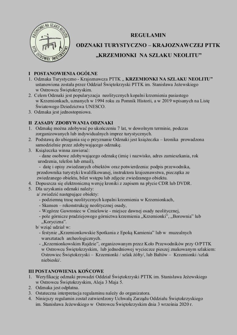 ODZNAKI ODDZIAŁU - Oficjalna Strona Oddziału Świętokrzyskiego PTTK im. St. Jeżewskiego w Ostrowcu Św Al. 3-ego Maja 5, tel. (41) 265-25-24